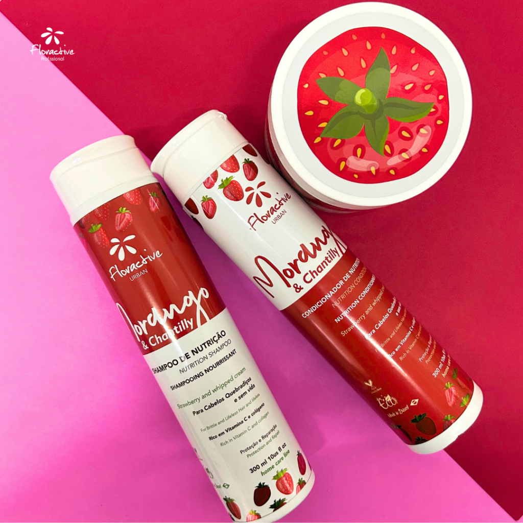 - Fragrância Irresistível: Imagine um aroma doce e fresco de morangos maduras, combinado com a suavidade e a doçura do chantilly. Essa é a essência envolvente do Kit Morango e Chantilly da Floractive Urban, que transforma a sua rotina de cuidados capilares em um momento de prazer olfativo.